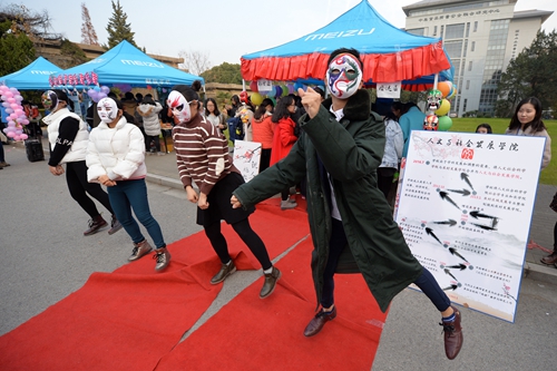 人文学院以“人景醉情谊,文书绘故事”为主题,举办了画戏曲脸谱、猜灯谜猜文物、捏泥人等多项传统活动。