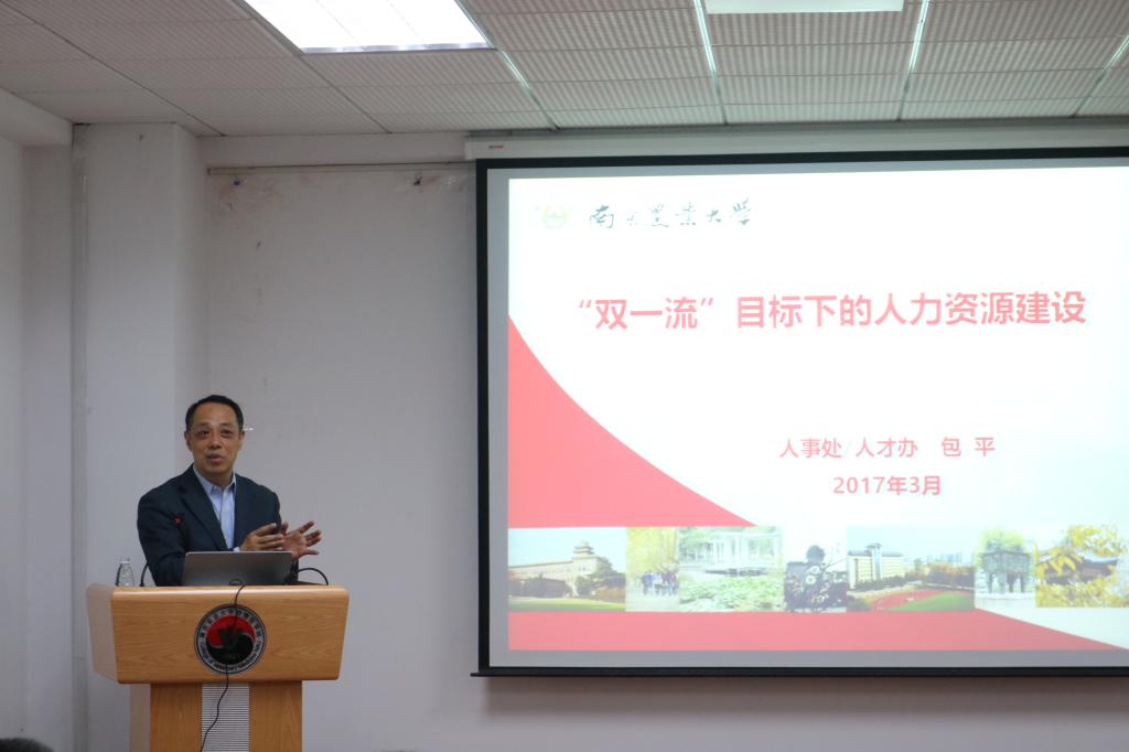 人事处处长、人才办主任包平作了题为《“双一流”目标下的人力资源建设》报告。包平从国家“双一流”建设新任务谈起,分析了高校“双一流”建设的内涵、建设和改革的任务,指出高校应以“一流为目标、学科为基础、绩效为杠杆、改革为动力”加快建设步伐。重点围绕聘任、考核、分配等三类核心问题和“双一流”团队建设的目标和任务,对公司人才和团队队伍建设情况和未来规划作了重点阐释。