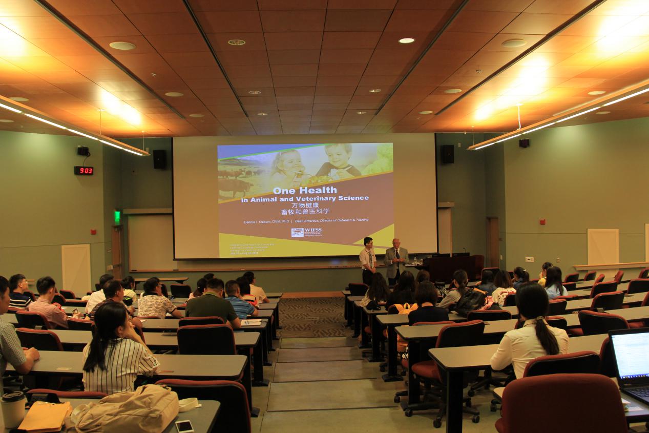 活动期间,学员们对“One Health”的概念进行深入的理论学习和实践。UC Davis兽医学院名誉经理Osburn及30多位流行病学、食品安全、动物临床等方面的教授走上讲台就流行病学、大数据、毒理学、食品安全、兽医产业经济等方面情况结合美国生产实际运用对“One Health”进行讲解。期间,还围绕加州农业经济参观了奶牛养殖、蜂蜜生产、宠物诊疗等产业基地,让学员对整个加州农业及未来农业发展方向有了细致深入的了解。