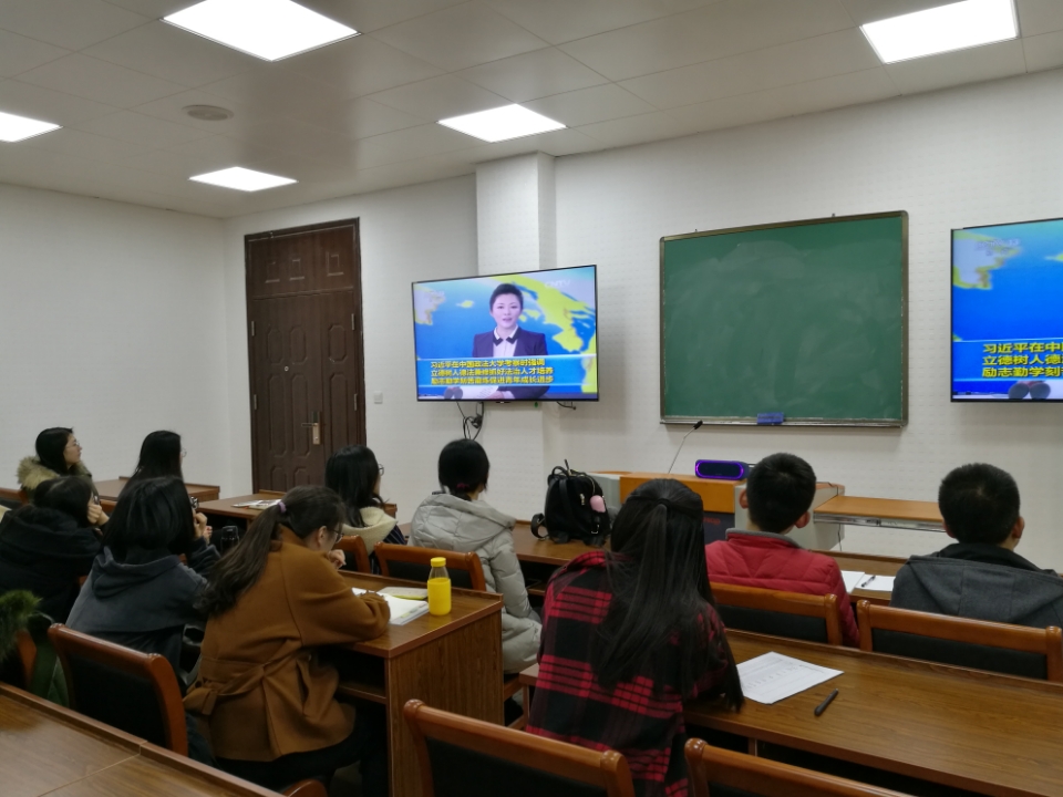 专题学习的第二部分是学习习近平总书记系列讲话。同学们先后观看了《习近平总书记在中国政法大学考察时重要讲话精神》和《青年要自觉践行社会主义核心价值观——习近平在北京大学师生座谈会上的讲话》相关视频。