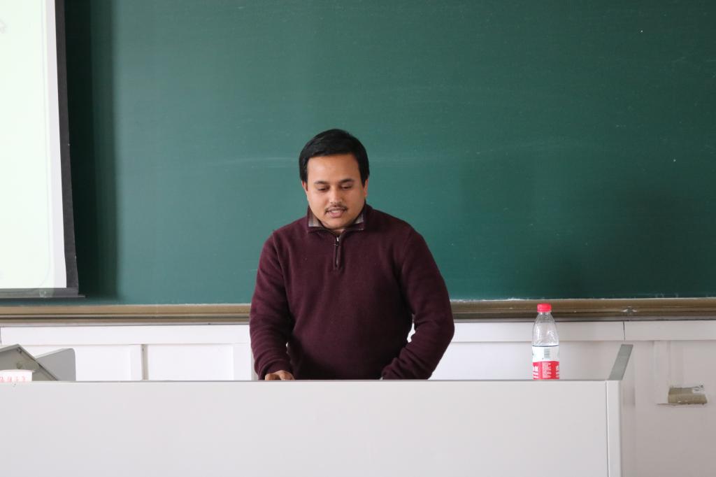 首先,博士生李昱辰以《猪流行性腹泻病毒经鼻粘膜感染仔猪的机制研究》为题开始演讲,研究发现低水平感染猪鼻粘膜有利于空气中的PEDV在鼻腔中的积累和复壮;PEDV能利用树突状细胞的主动摄取功能入侵鼻粘膜屏障。第二位是博士生Roy Animesh ,题为《Molecular mechanism of diaminopilemic acid (iE-DAP)produced by subacute ruminal acidosis on inflammatory response in liver of ruminant animals》,研究发现在SB能缓解iE-DAP 诱导的炎症和HC饮食导致的肝脏损伤。第三位是博士生徐天乐,分享了《内源及外源脂多糖LPS对奶牛肝脏代谢的影响和硬脂酰辅酶A脱氢酶的表达调控机制研究》,研究发现内外源LPS处理都可引起肝脏中脂代谢关键酶SCD1的表达下调,其基因表达可受表观遗传(长期SARA)或相关转录因子(外源LPS)的双重调控。
