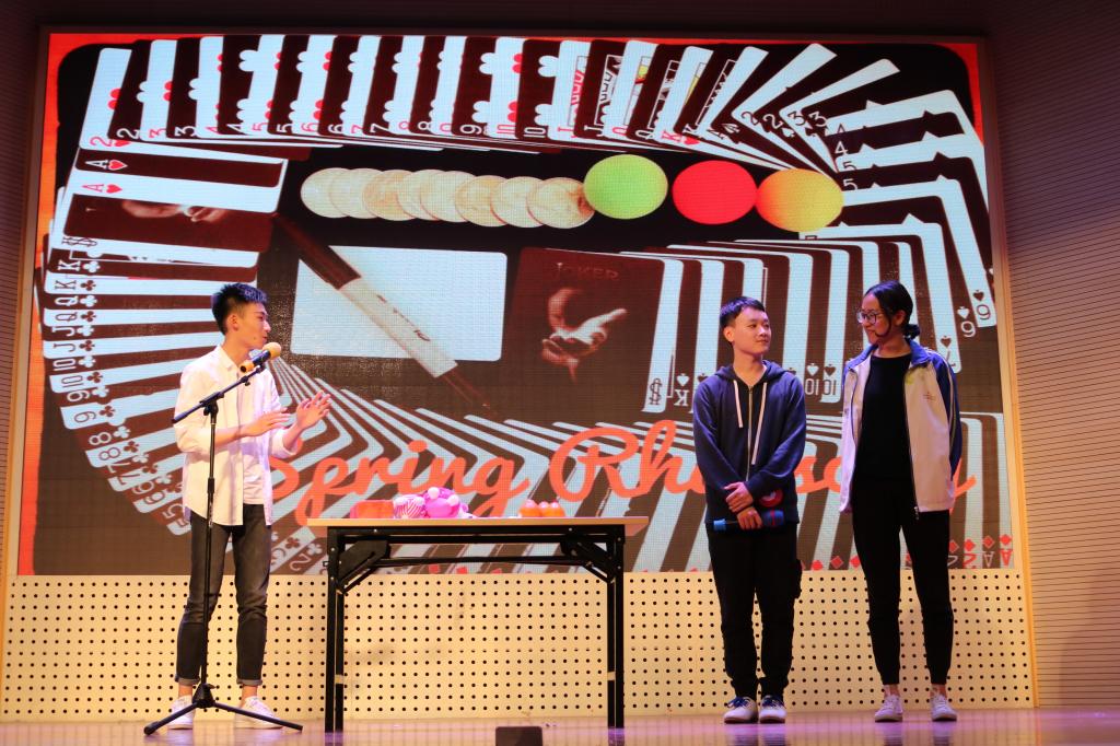 第三轮排位赛,最终进入十强的同学展开了激烈的争夺,张禀坤的一曲《匆匆那年》将时光拉回青葱岁月,周沁怡的一曲《往事只能回味》让人走到了记忆深处的那条街道。中场统分环节,2017级动医174班余啸楠同学带来了精彩的中场魔术表演。