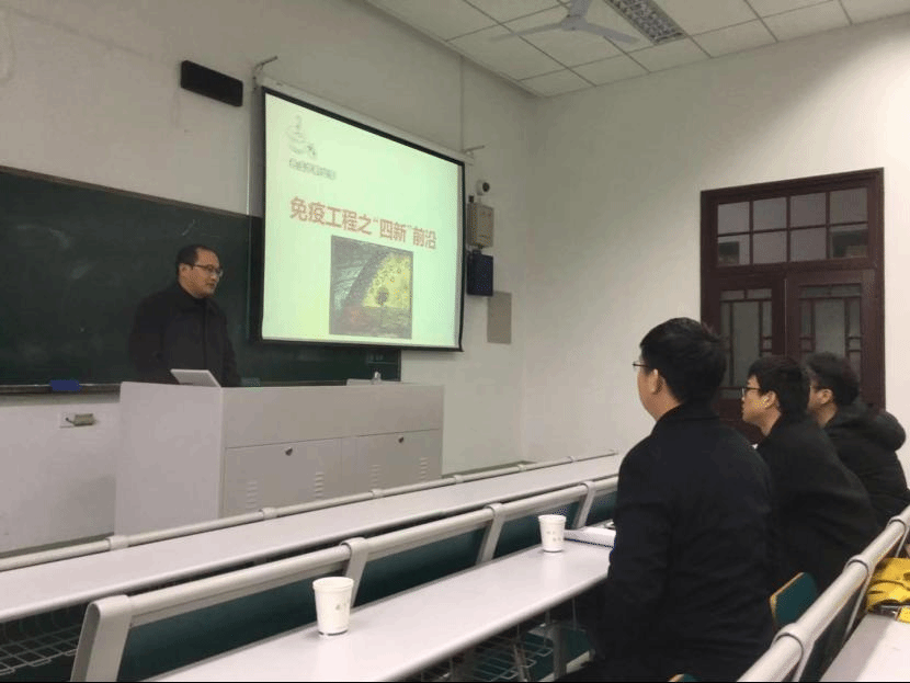 随后,来自江苏省农业科学研究院动物免疫工程研究所郑其升研究员作了题为“动物免疫工程之“四新”(新理念、新技术、新材料和新设备)前沿”的报告,报告从动物免疫工程研究所的发展历史,前辈的研究成果,目前的免疫工程发展方向等方面进行详细阐述,使同学们对疫苗的种类、疫苗技术及疫苗发展有了系统全面的了解。