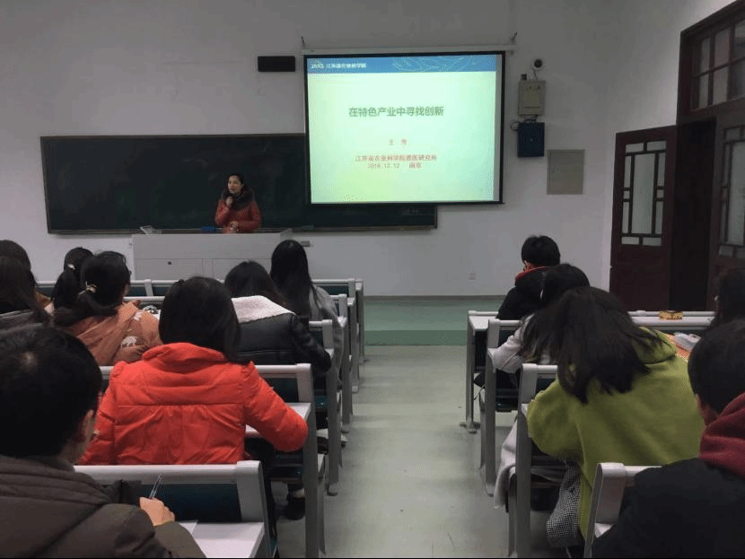 首先,江苏省农业科学研究院兽医研究所王芳研究员作了题为“在特色产业中寻找创新”的报告,王研究员以兔为特色产业,从兔肉、兔毛的优势和缺点、兔的品种及兔病和疫苗等多方面进行阐述,在不断创新的过程中找到自己的特色,取得了显著成效。同时还和同学们分享了一些自己在科学研究与产业新道路上的亲身经历及人生感悟。