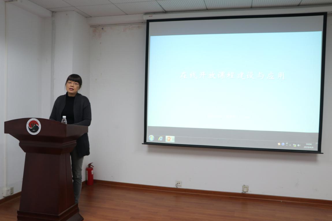阎燕老师从在线开放课程申报流程、建设要求以及教学应用等方面对在线开放课程进行详细的阐述,结合学院正在建设的4门在线课程进展情况进行了针对性的指导,对学校制定的在线开放课程制度与标准进行了解读。