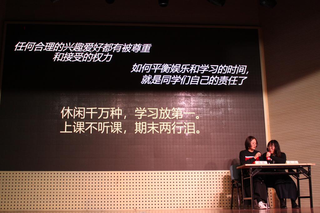 裴海岩老师和王璐老师分别做了点评,两位老师对同学们的精彩演出给予了高度的认可,并指出,比赛只是一种形式,每一个节目和表演都凝聚了整个班级同学的心血和精力,这个比赛既展示了班级同学的风采,又促进了班级同学之间的友谊,更丰富了大家的课余生活。