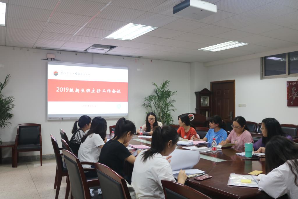9月4日下午4:30,公司在逸夫楼3036召开2019级新生班主任会议。QY球友会团委副书记金洁南,辅导员徐刚,新生班主任高雁怩、唐姝、甘芳、安琪和团务助理刘昱轩、卢佳璇、李梦雅、吕若一、程子乐、李南南,与会参加。