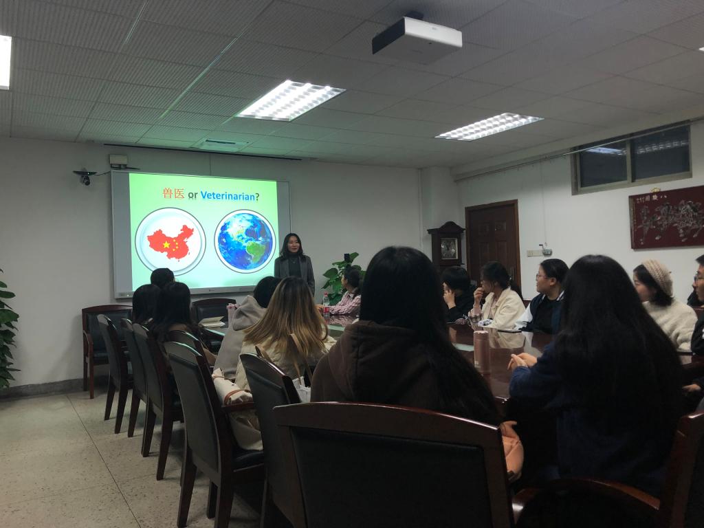10月28日,高雁怩老师在逸夫楼3036展开了一场新生研讨课,以亲身经历对国内外大学的兽医专业做了对比分析。高老师不久前刚从英国读完博士,因而对国内外兽医专业有着清晰的认识。