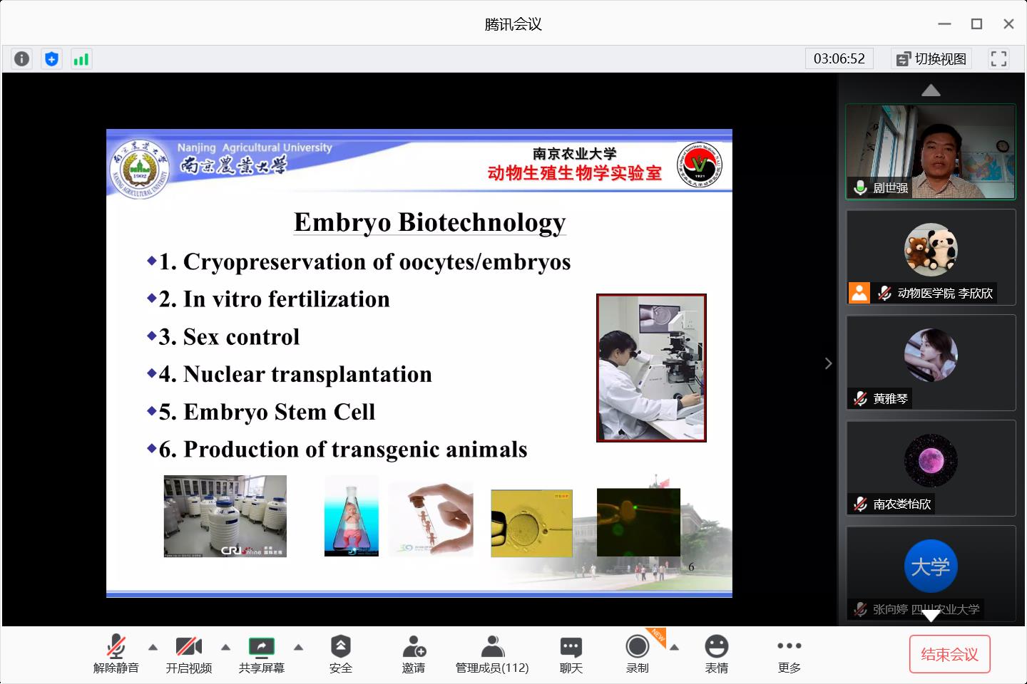 会议伊始,基础兽医方向杨晓静、郭大伟、许媛媛、庾庆华、唐姝、黄宇飞六位老师,详细介绍了基础兽医方向动物生理学、动物药理学、动物生化学、动物粘膜免疫学、动物病理学、动物组胚学六个课题组的详细情况;