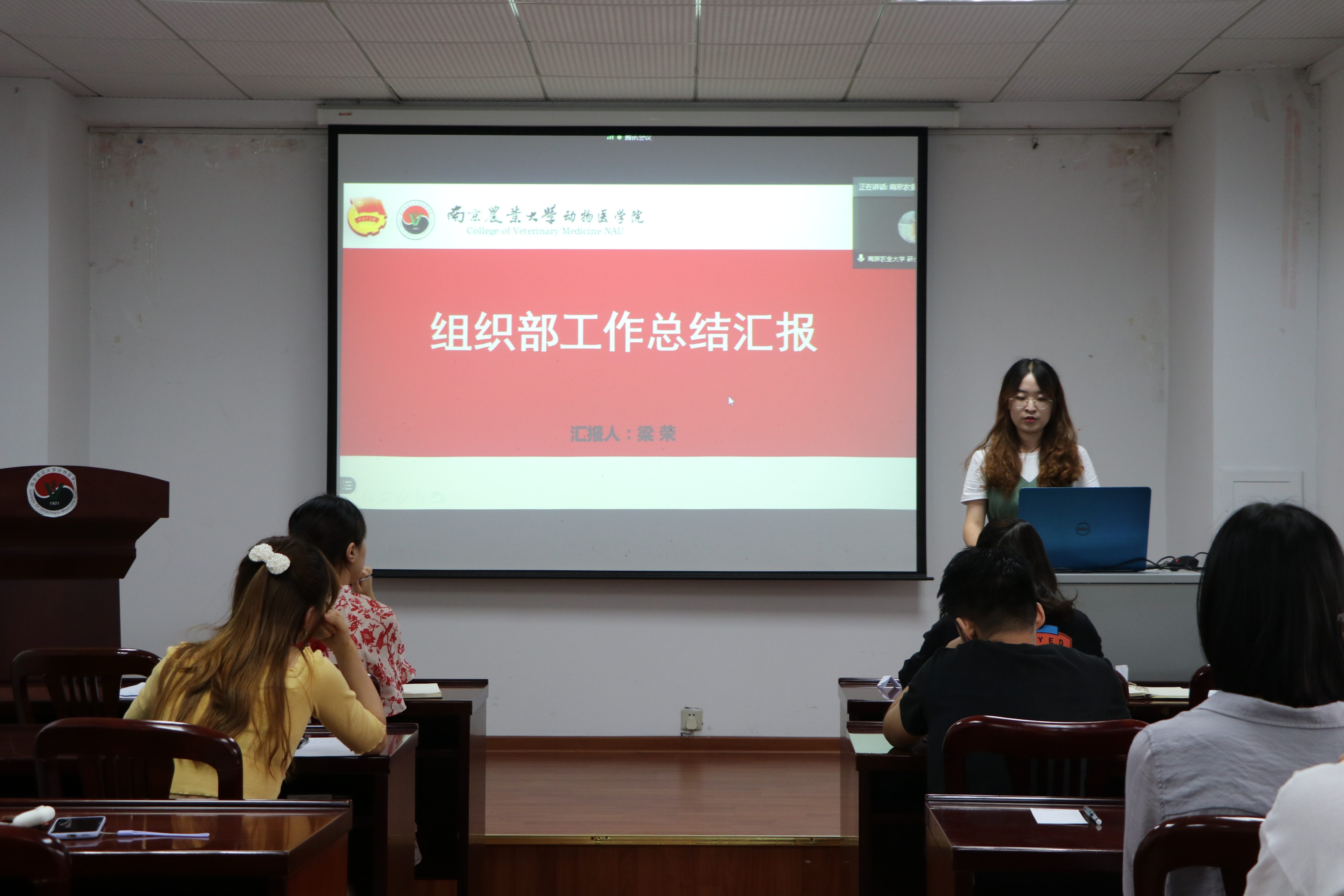 随后,各部门部长就这一学年来的部门工作进行了汇报,进行了总结与反思,并做出了未来的工作计划。在2019-2020学年,文艺部举办了“星汇·十二星座”主题周末舞会,促进了公司员工的交流,增强了公司员工的情感凝聚力。学术部开展了“青年学术论坛”,该论坛已成为公司青年教师和博士研究生学习交流成果的重要平台,让公司师生能够掌握兽医学最前沿的发展,提高公司的科研创新能力。组织部积极举办了员工党组织活动,如“十九大知识竞赛”、“两会教育”等,增强了公司员工的党性修养。办公室在进行奖学金评比、档案管理等日常工作的同时,进行了研究生“最佳实验记录本”评比大赛,为研究生平淡的科研生活增添一抹趣味色彩。生活就业部邀请到了AMC河西中心动物医院经理刘艳海参与了第四期“Peer Talk朋辈领航说”求职经验分享活动,为公司员工介绍了当前的行业形式。宣传部将学院和研会的各项工作及时推送给了公司员工。辅导员汪明佳老师对各部门的工作进行的点评和建议。
