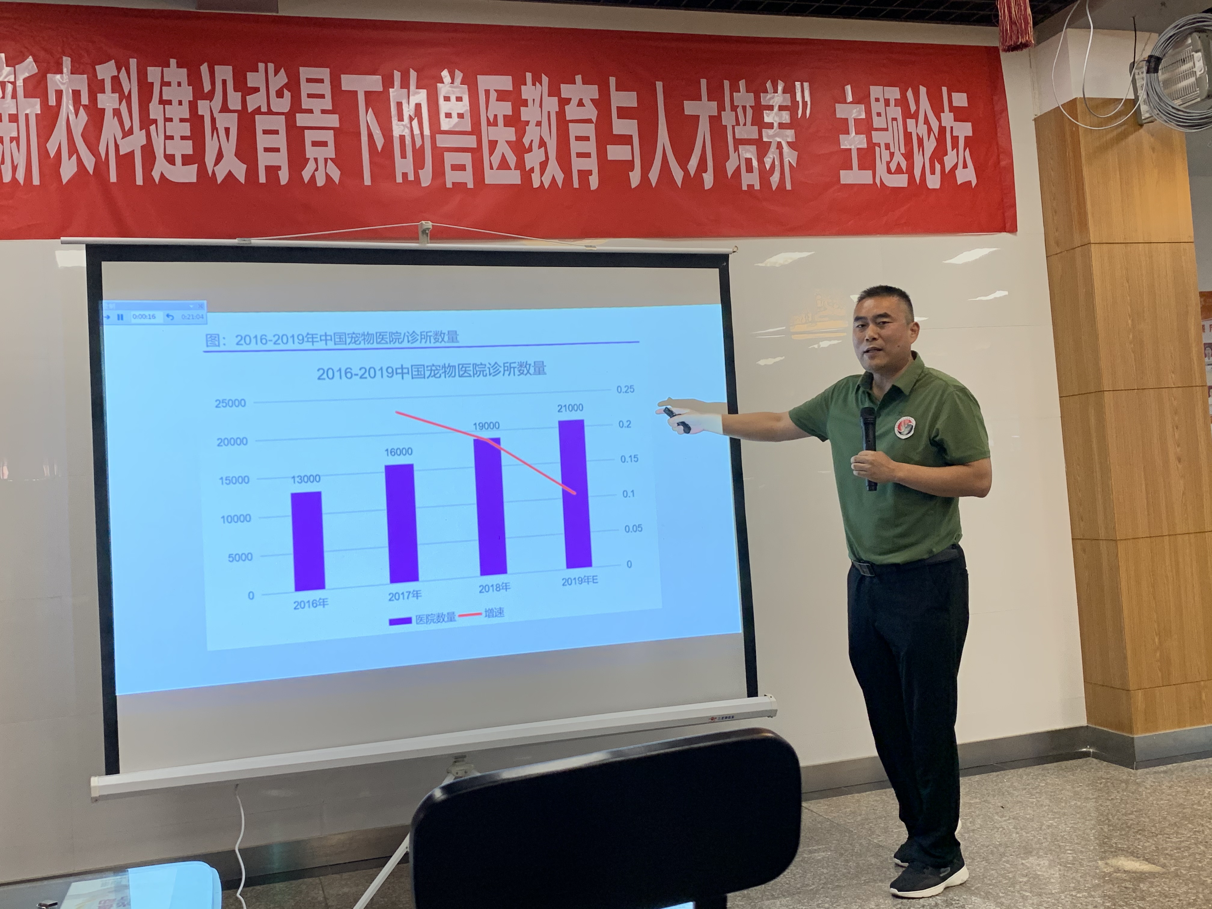 随后,周振雷教授围绕“宠物行业的现状与未来”的报告主题,详细的介绍了宠物行业的现状、宠物行业产业链、未来发展前景等现状,系统分析了当前宠物诊疗行业人才资源短缺等问题,鼓励同学们更多的关注该行业的发展。