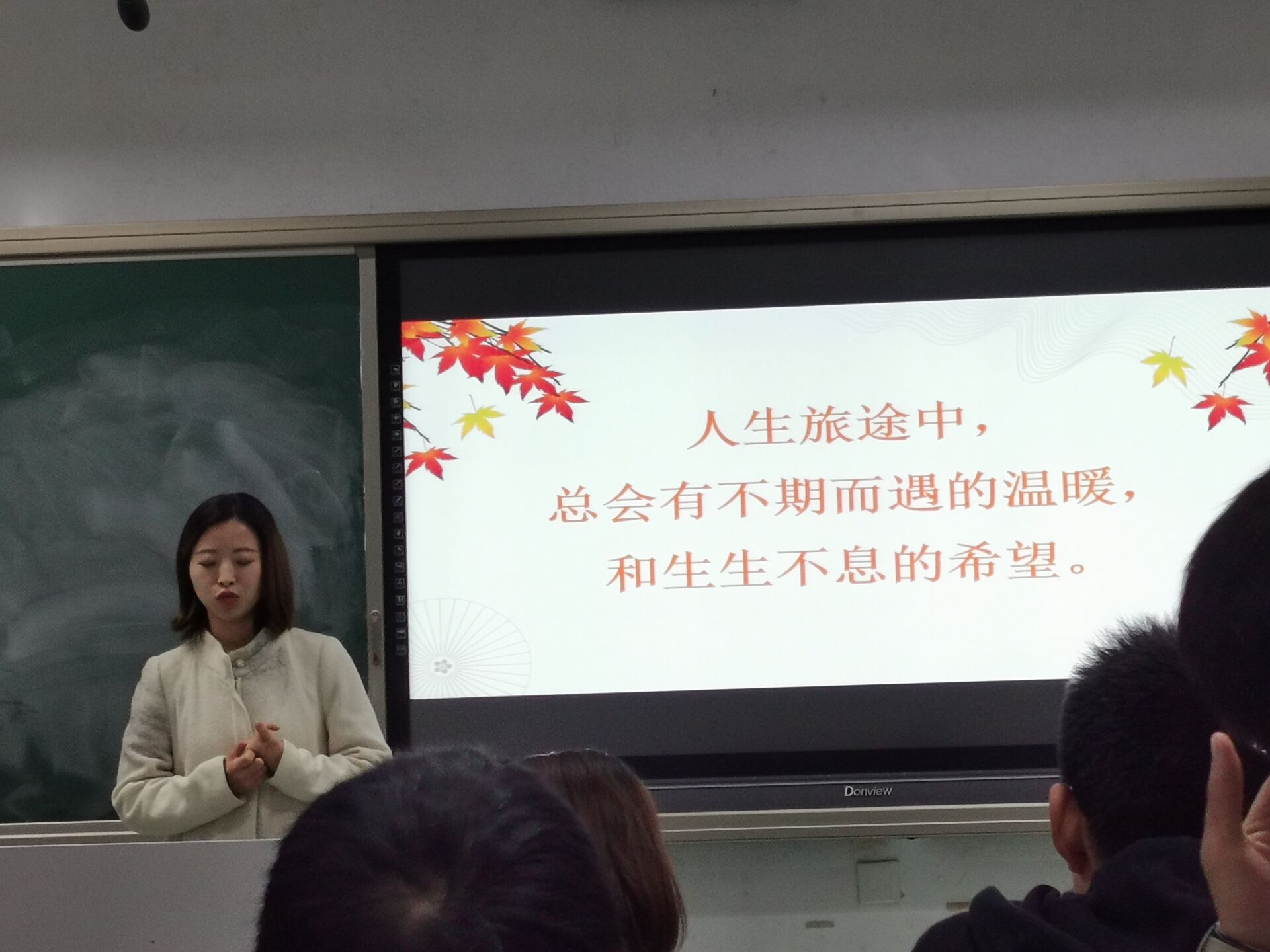 第一部分的主题是:我”幸福”吗?李老师请同学们用三个关键词定义幸福,到课的18级、20级同学分别阐述了自己的观点,提到了保研、平安、理想、自由等词语,体现出同学们对幸福的多样化解读。