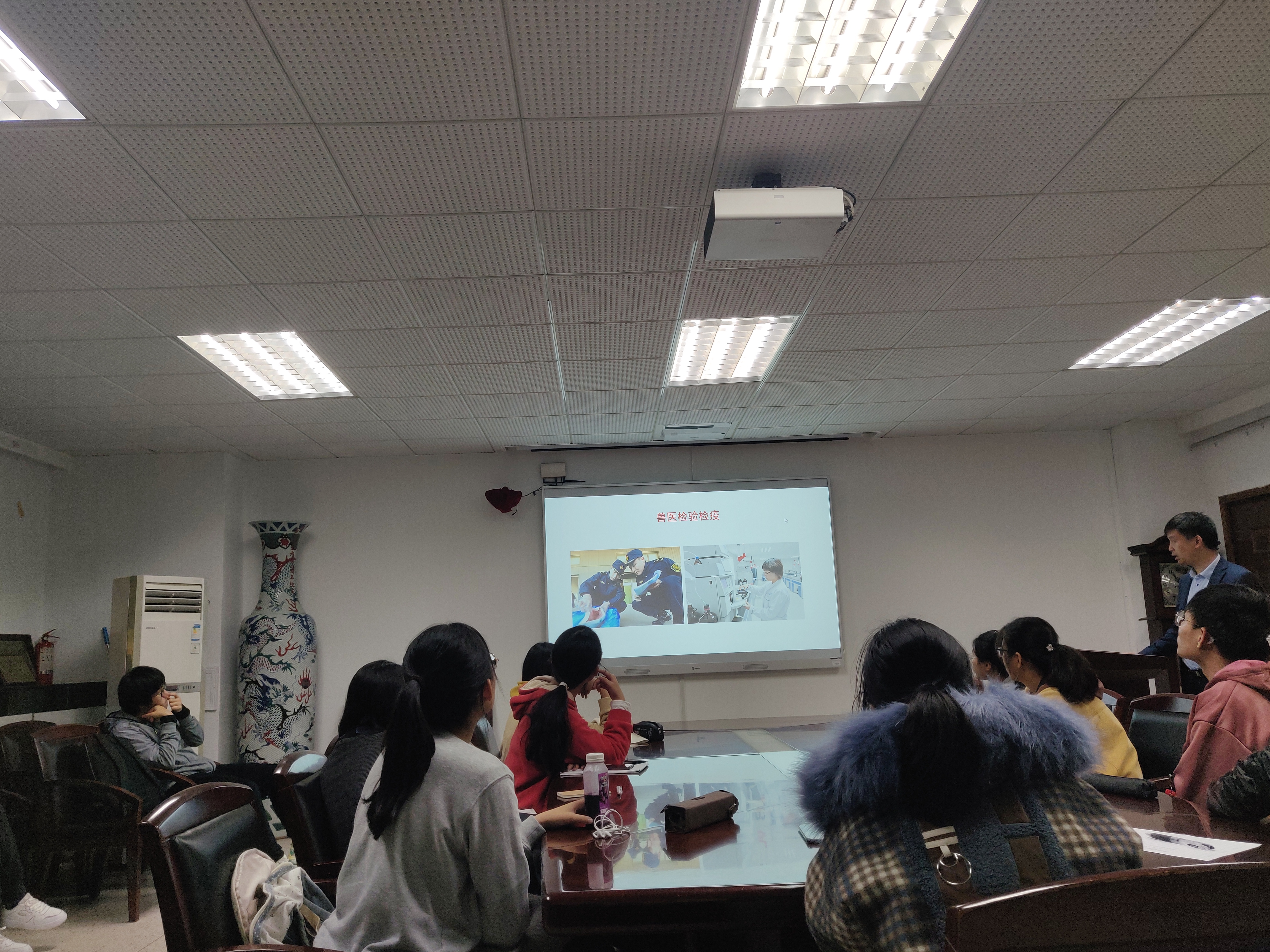 在研讨课上,曹老师提到了现代兽医已经和从前的传统兽医产生了不同,现在更需要的,是受过高素质教育、拥有新技能的新兽医。曹老师同时让同学们了解到,兽医在检验检疫、食品安全、宠物诊疗、野生动物公益保护、人兽共患传染病的防控、药物研发等各个方面都起到了非同寻常的作用,兽医能做到的事情,远比现代社会所想到的要多得多。