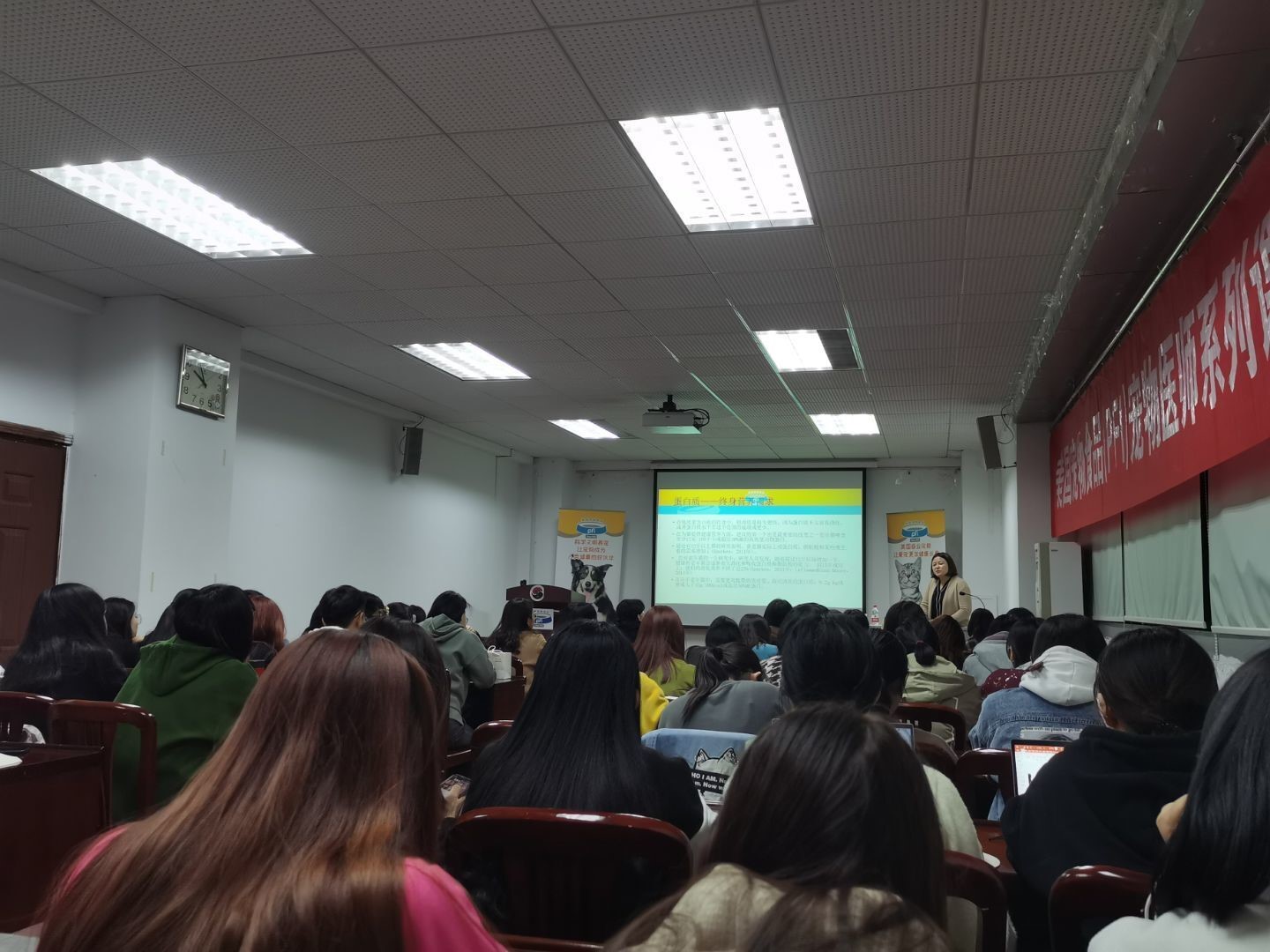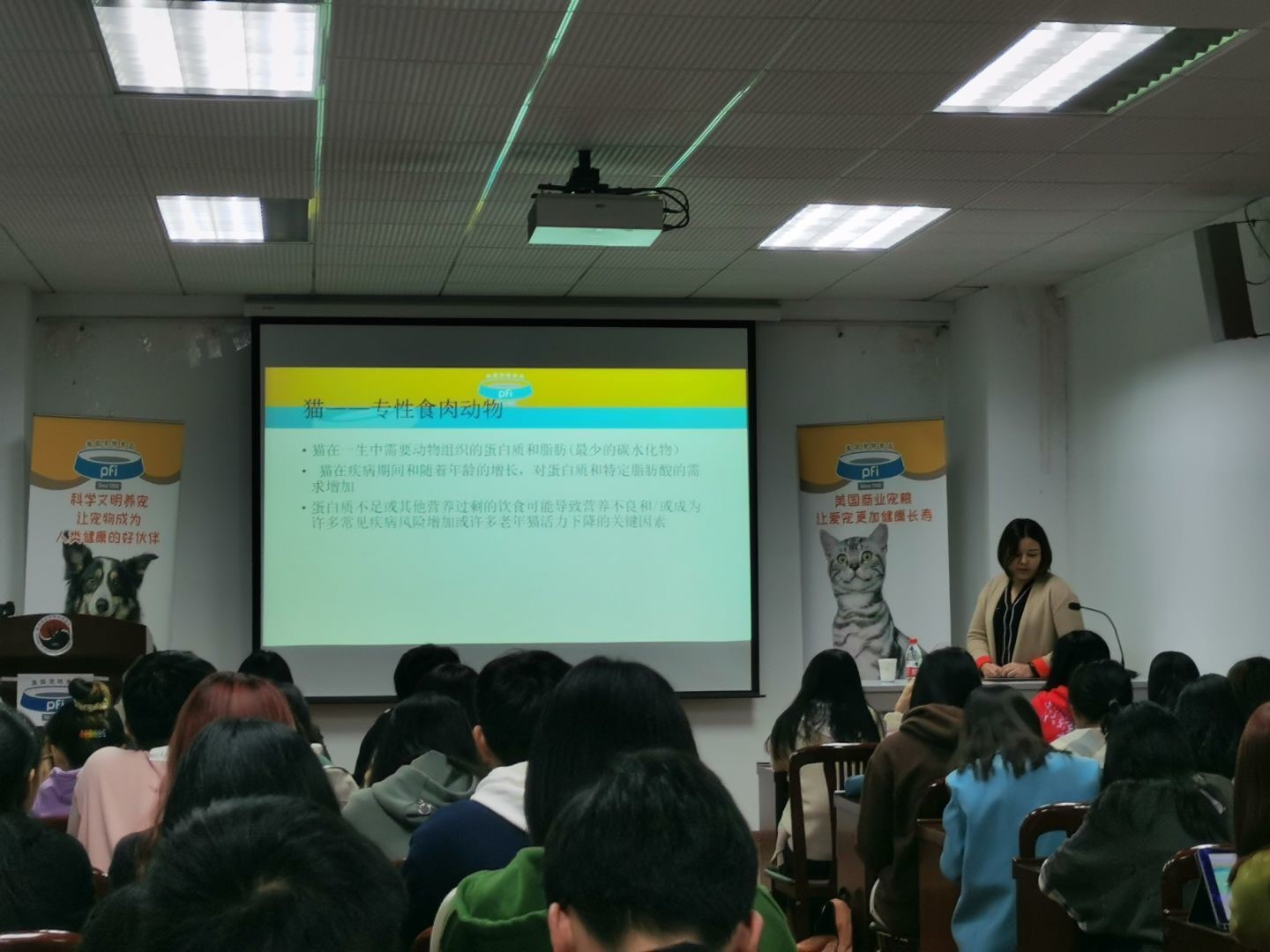 11月12日晚7点美国宠物食品协会宠物医师系列课程第四讲在QY球友会体育逸夫楼3044顺利举办。本次课程题目为《猫的营养需求》,由现任艾贝尔中央猫科医院主任兽医师及小区技术经理陈舒蒙主讲。