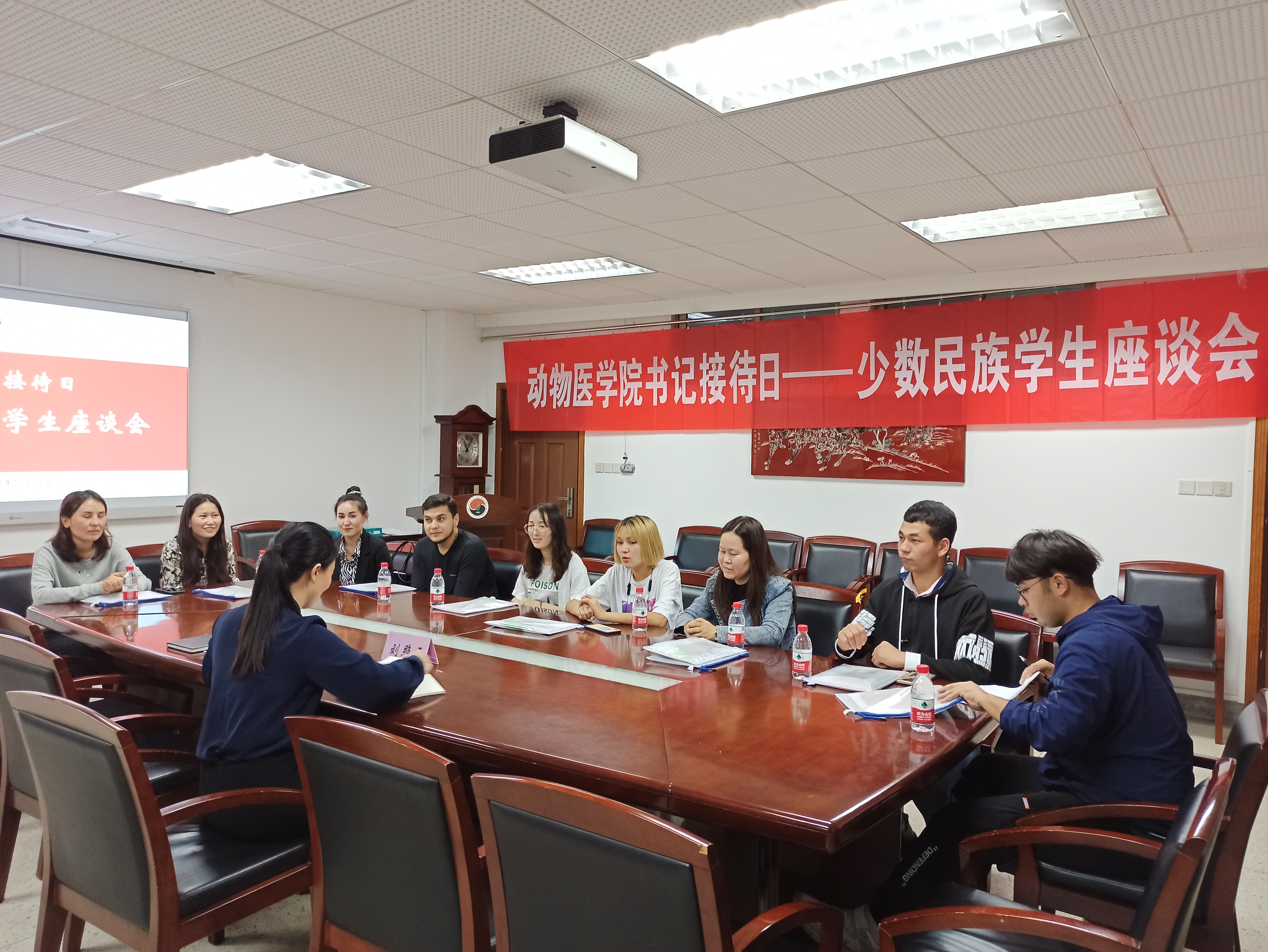 11月18日下午4:00,QY球友会“书记接待日”之少数民族员工座谈会在逸夫楼3036会议室召开,动医院2017级和2020级全体少数民族本科生到场参加,公司党委副书记刘照云、辅导员徐刚参与座谈。