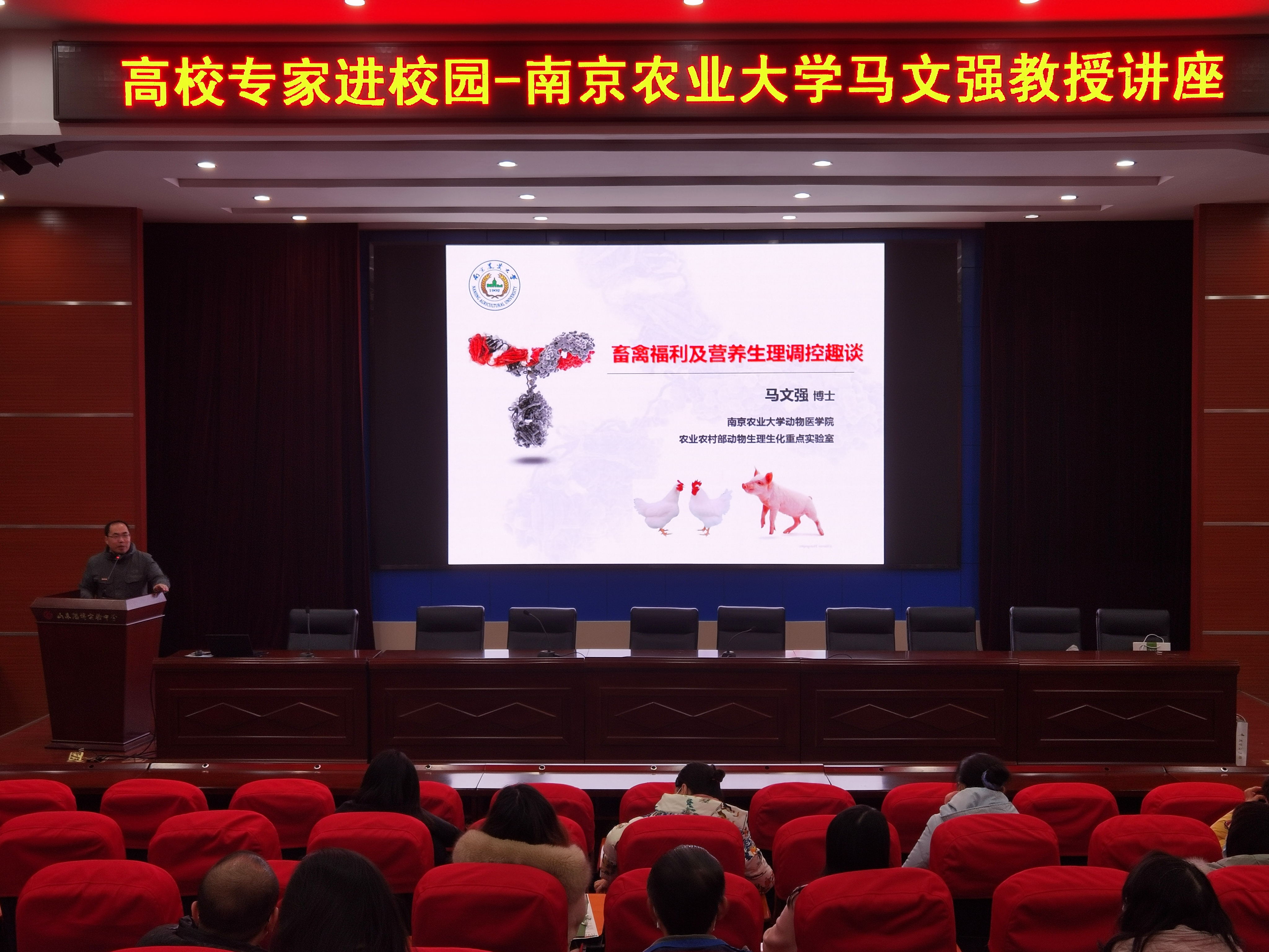 马文强副教授为淄博实验中学的家长和同学们开展了主题为《畜禽应激及生理调控趣谈》的科普讲座,内容深入浅出,生动有趣,受到了同学们的热烈欢迎。