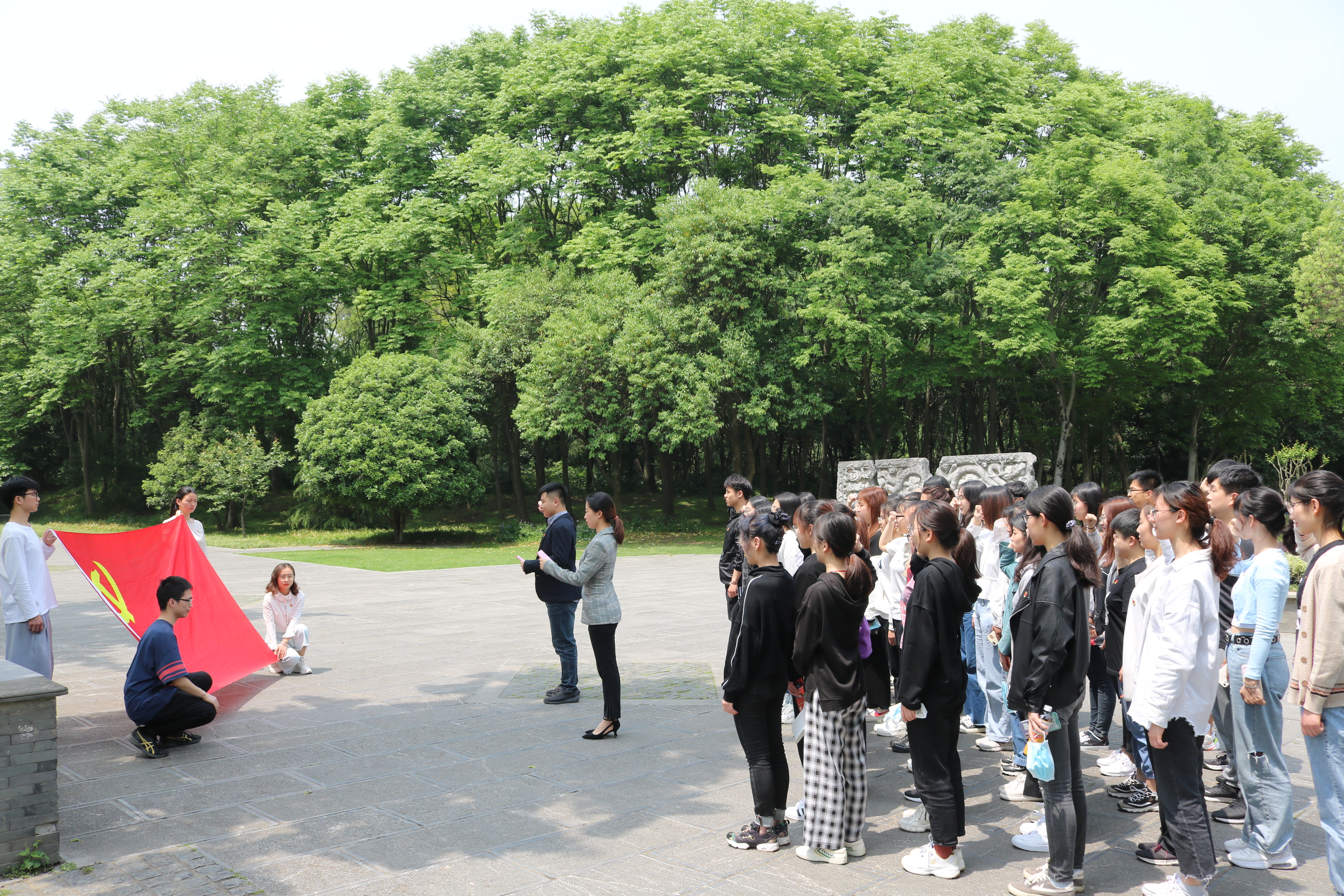活动启动仪式在下马坊遗址公园举行,支部书记金洁南表示本次党日活动寓教于乐,希望同学们秉持学习第一、锻炼第二、比赛第三的心态,学习党史的同事,能够认真享受,亲近大自然。随后,在徐刚、李欣欣的带领下,全体本科生党员重温入党誓词,并进行小组亮相互动。