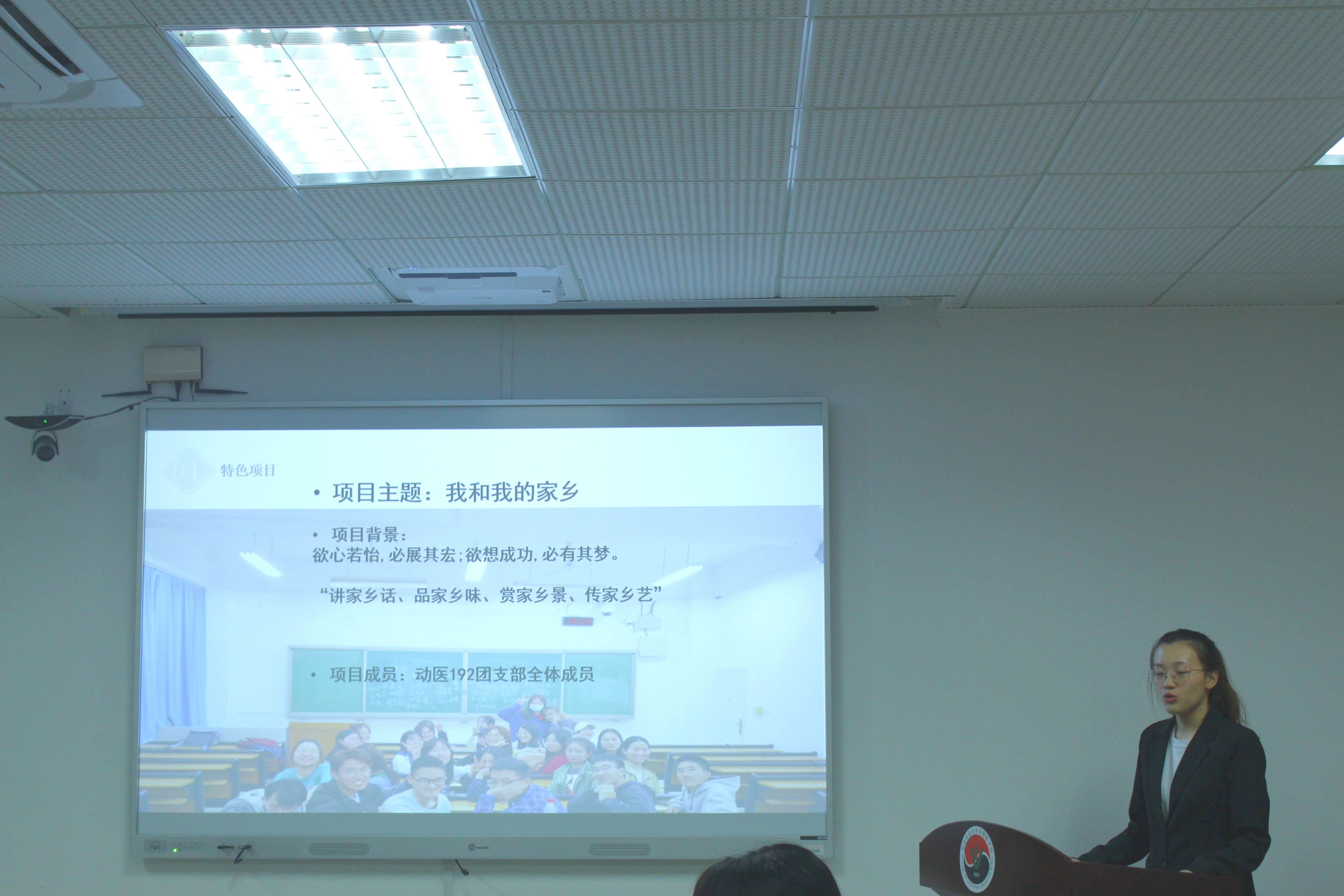 动医192班团支部举办“说家乡话,赏家乡景,品家乡味,传家乡艺”X特色项目。团支部成员互相分享家乡风情,并发布推送扩大宣传。该活动极大促进支部成员之间互相了解,通过对家乡之情促进支部成员感情交流,是一个较好促进支部凝聚力的活动方式。该支部很注重情感交流,在文化建设中,该支部为自己班级制作了合影拼图,非常具有纪念意义。
