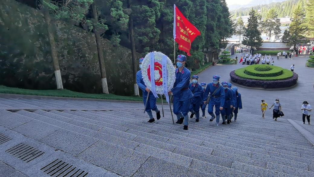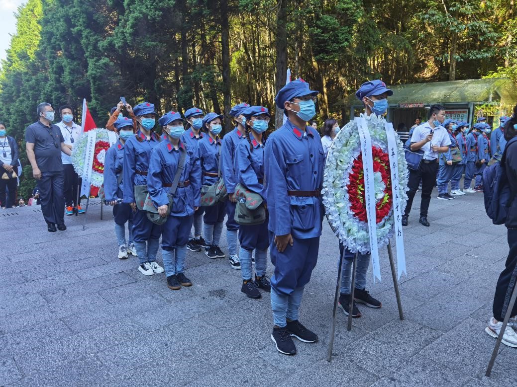 7月15日清晨,微风习习,同学们身着红军装,来到井冈山北山烈士陵园,缅怀先烈。现场的讲解老师通过讲述女红军战士——段子英,八年寻党路的故事和无数为国为民献身革命事业的来诠释我党“不忘初心,坚定理想信念”的精神。