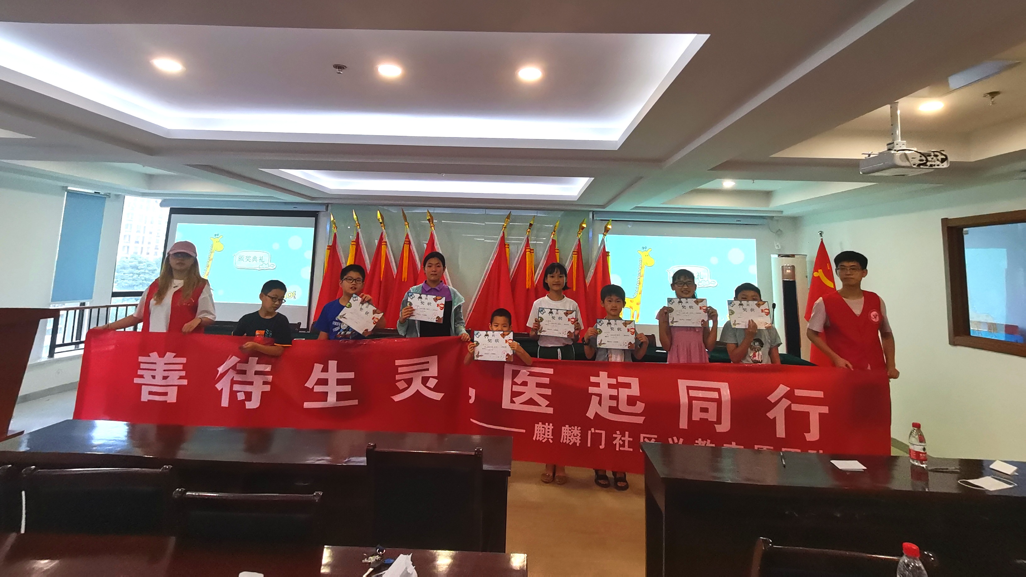 7天志愿服务,麒麟门社区志愿服务团成员吃苦耐劳、热情洋溢,为社区的孩子们认真的上每一节课。认真负责的工作态度受到了麒麟门社区负责人和孩子们的一致好评。并在实践过程中,运用了自己的专业知识,学以致用,宣传了动物保护理念。