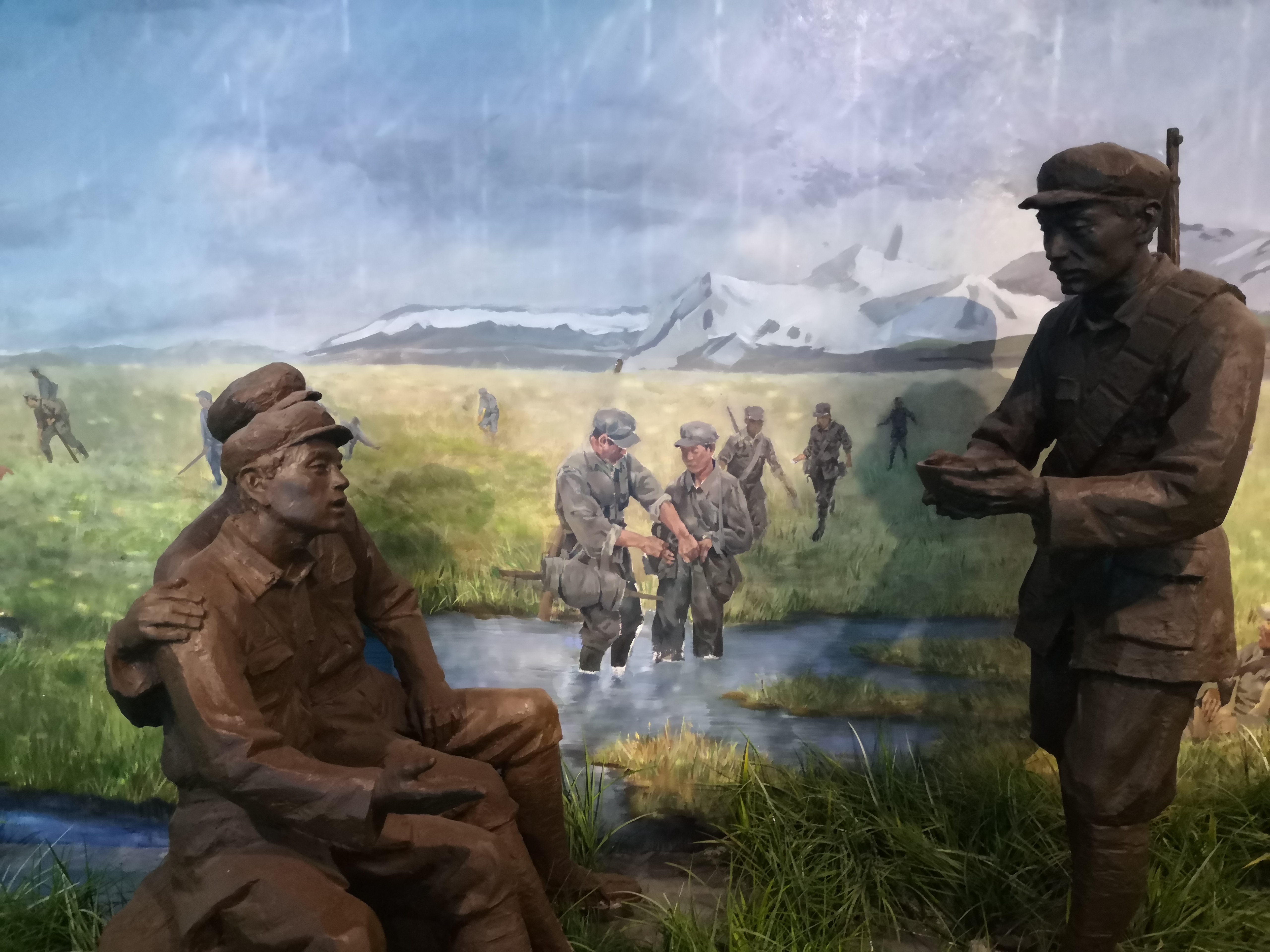 在参观红军长征湘江战役纪念馆时,首先映入眼帘的就是红军抢渡湘江的大型浮雕,辉煌而悲壮。一件件文物,一幅幅图片,一座座雕像,都述说着红军们伟大悲壮的故事,展示了他们坚韧不屈,勇于牺牲,勇于突破的革命精神。