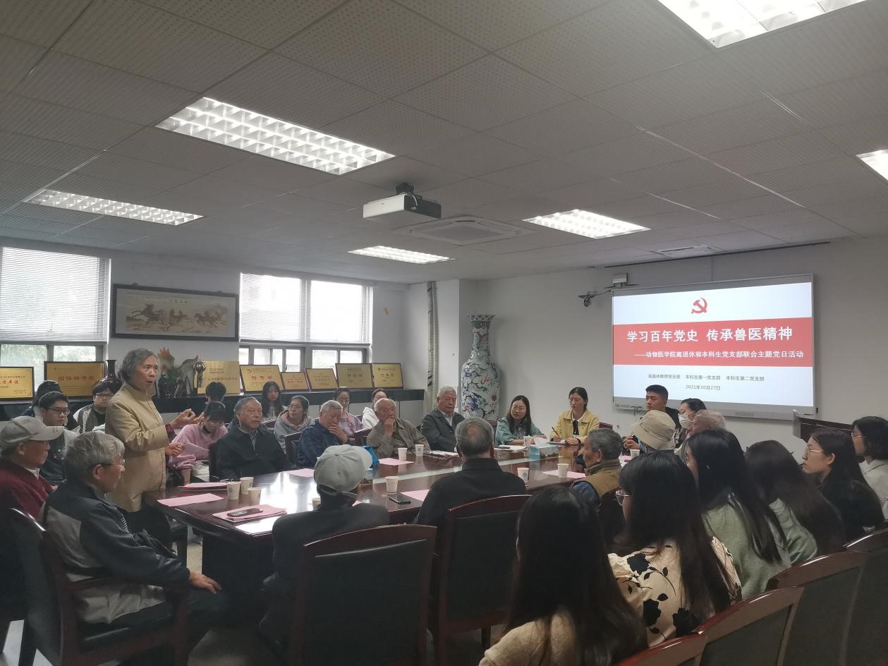 “百年党史,百年兽医”,今年是建党一百周年,也是兽医系成立一百周年,为更好地学习百年党史,赓续革命血脉,传承兽医精神,10月27日下午,离退休教师党支部和本科生党支部联合举办“学习百年党史,传承兽医精神”主题党日活动。活动由本科生第二党支部书记李欣欣主持,QY球友会离退休党支部教师、研究生辅导员汪明佳、本科生第一党支部及第二党支部约40名党员到场参会。