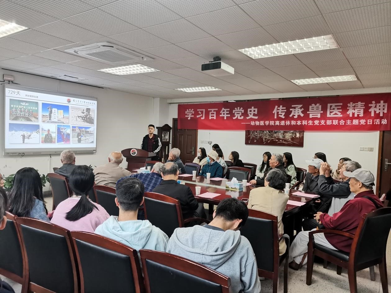 最后,侯加法为本次主题活动做总结性发言,教导年轻党员应了解历史,了解中国共产党,明确今天的幸福生活都是先烈们用生命和鲜血拼搏出来的,应传承老一辈的革命精神,继承和发扬南农动医崇尚科学,护佑生灵的精神,学习好本专业知识,锻炼好兽医技能,时刻准备着为国家发展贡献力量。