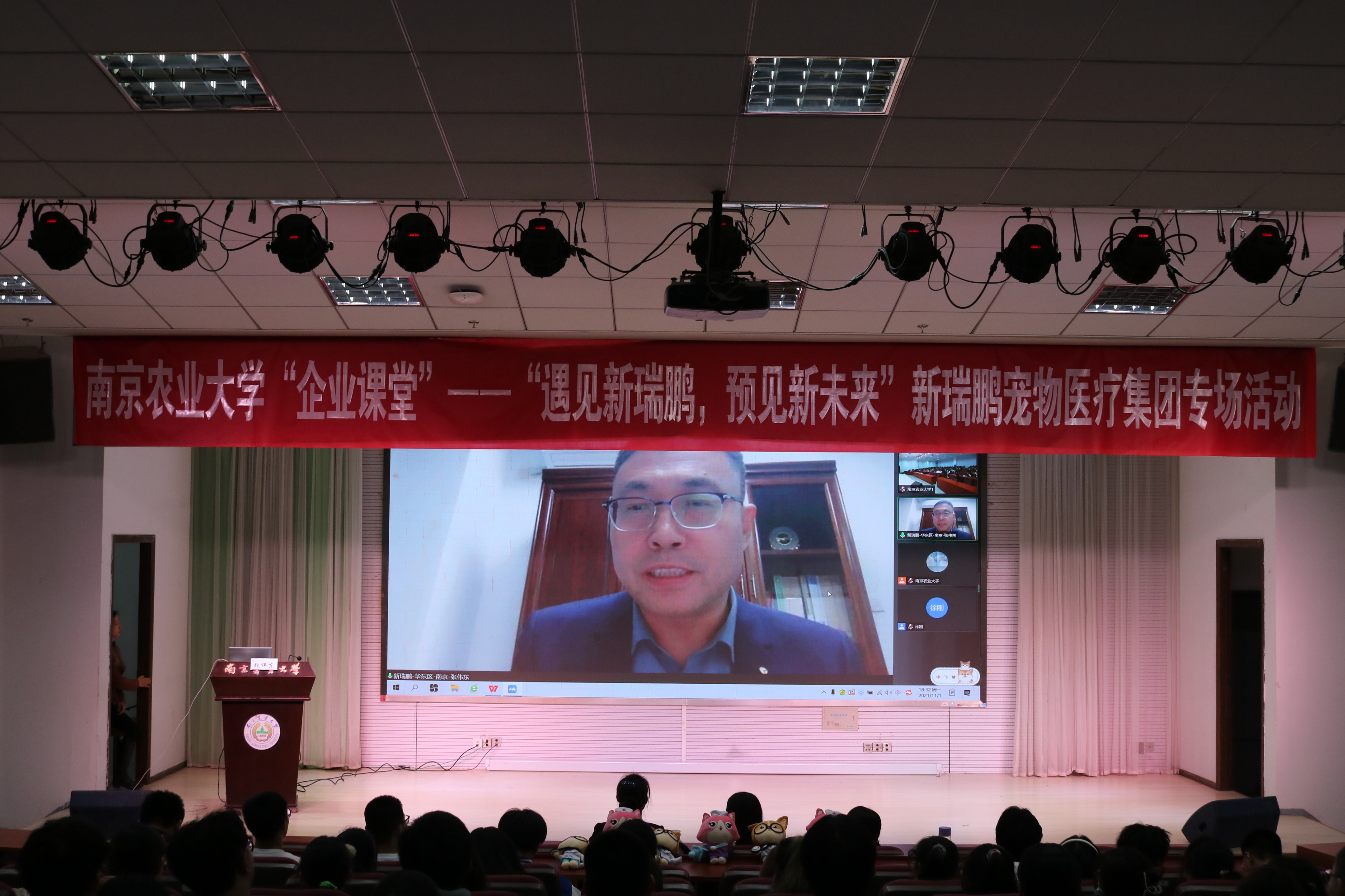 11月1日晚上6:30,QY球友会体育“企业课堂”—-新瑞鹏宠物医疗集团专场活动“预见宠物医疗行业·预见美好未来”在教四楼报告厅举行。新瑞鹏宠物医疗集团华东人力资源经理张蒙,QY球友会体育员工工作处副处长吴彦宁,公司党委副书记刘照云,辅导员徐刚、李欣欣到场参加,200余名感兴趣的员工到场参与。新瑞鹏宠物医疗集团华东副总经理张伟东作“宠物医疗行业发展趋势”主题报告,活动由刘照云主持。