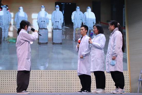本轮答题结束后由动医类2104班带来《1992的春天》舞台剧表演,从群众角度讲述了邓小平南方谈话的故事,为中国的社会主义市场经济体制的创建指明了方向。动医类2105班带来《十年艰辛,百年梦圆》舞台剧表演,展现了北京申奥背后的艰辛历程。动医类2103班带来《点亮那颗星火》舞台剧表演,讲述了青年学子在抗击疫情过程中成长的故事,彰显了青年人青春的蓬勃力量。