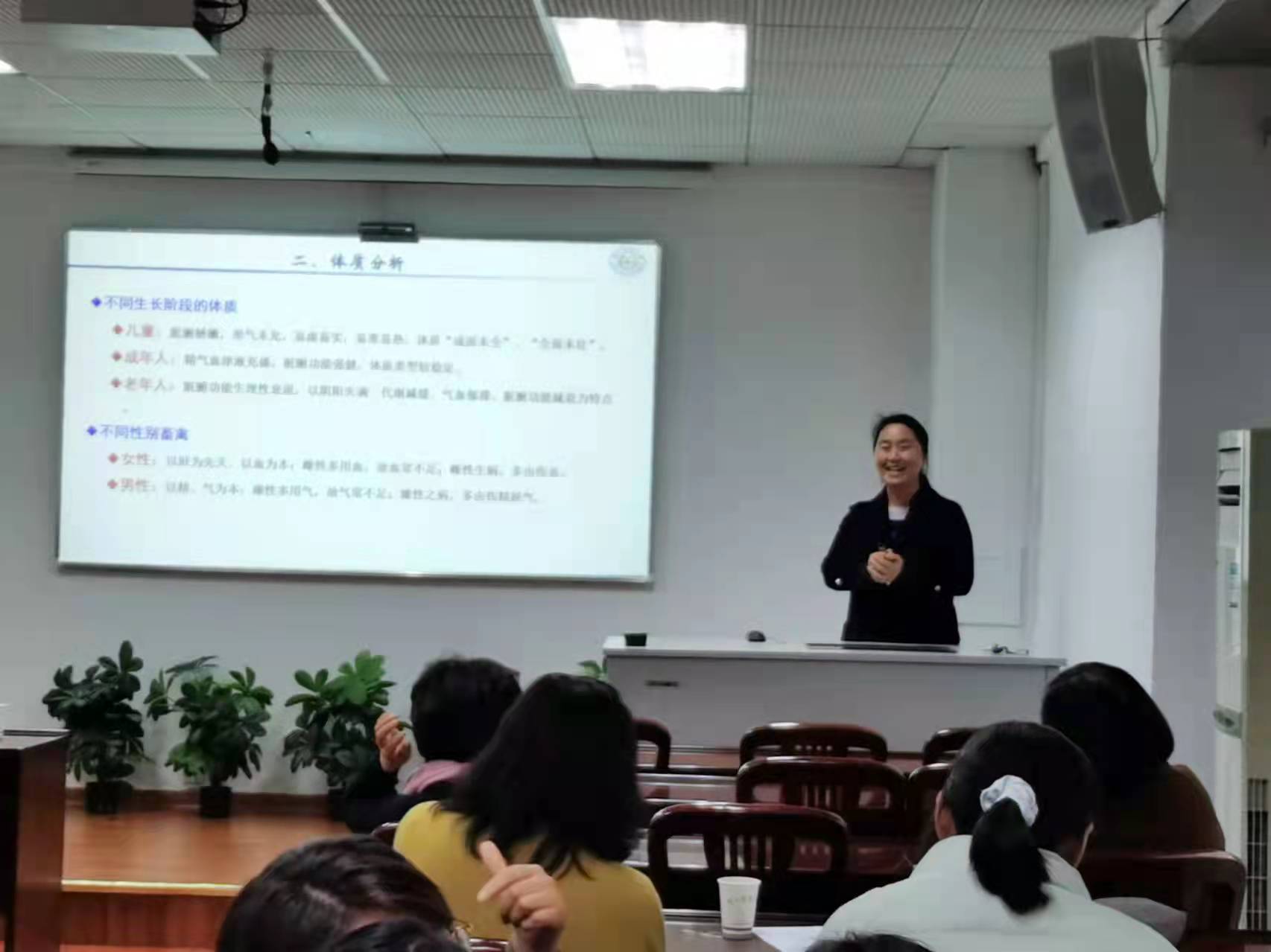 特约杨桂芹医生带来《冬季养生》的精彩讲座,赢得在场教师的阵阵掌声。