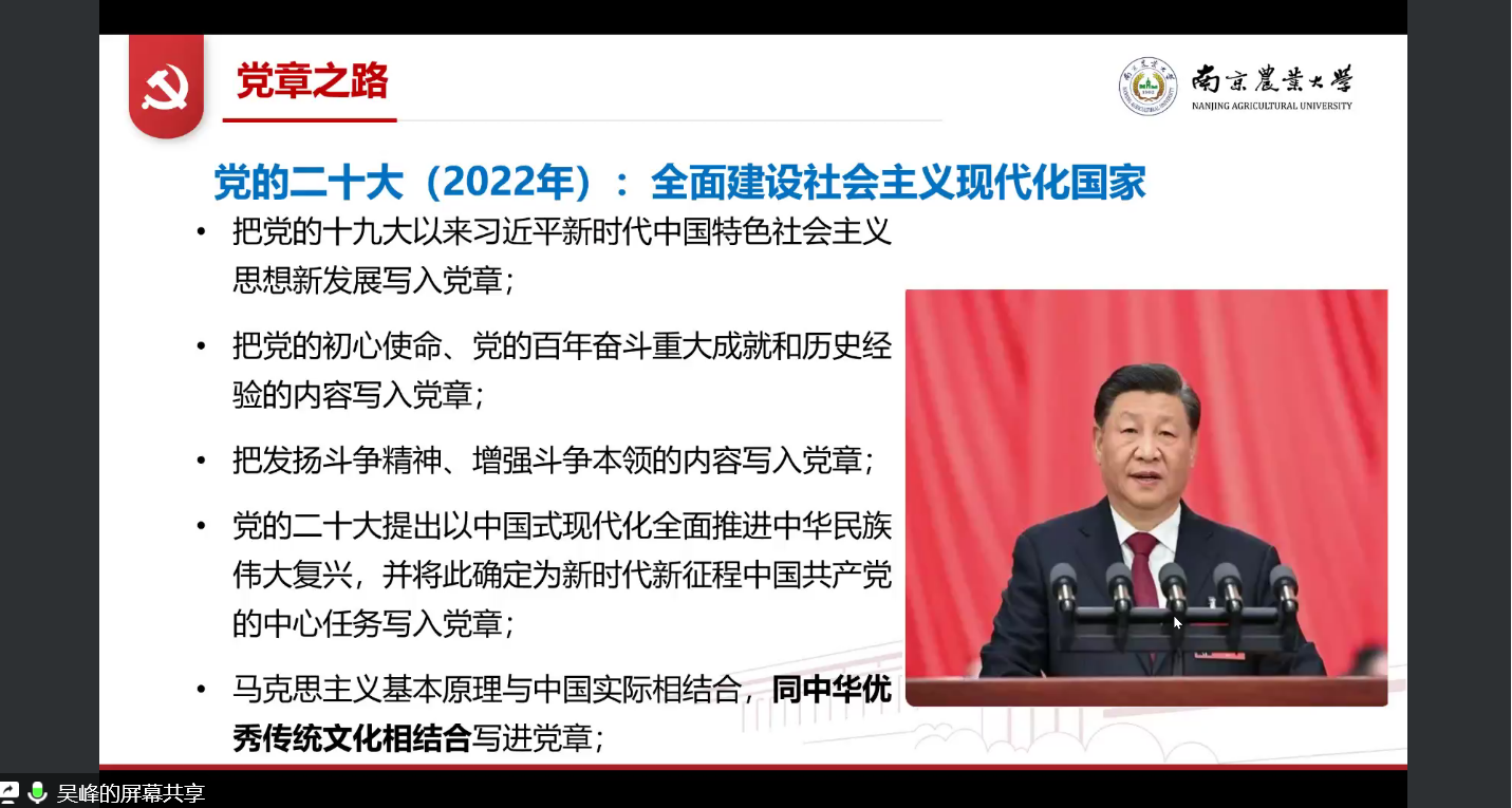 第三部分吴峰向同学们重点介绍了从一大到二十大以来的党章之路为同学总结了百年党章的具体演进与基本特点百年党章的演进历经18次修改是记录党从稚嫩走向成熟的历史见证