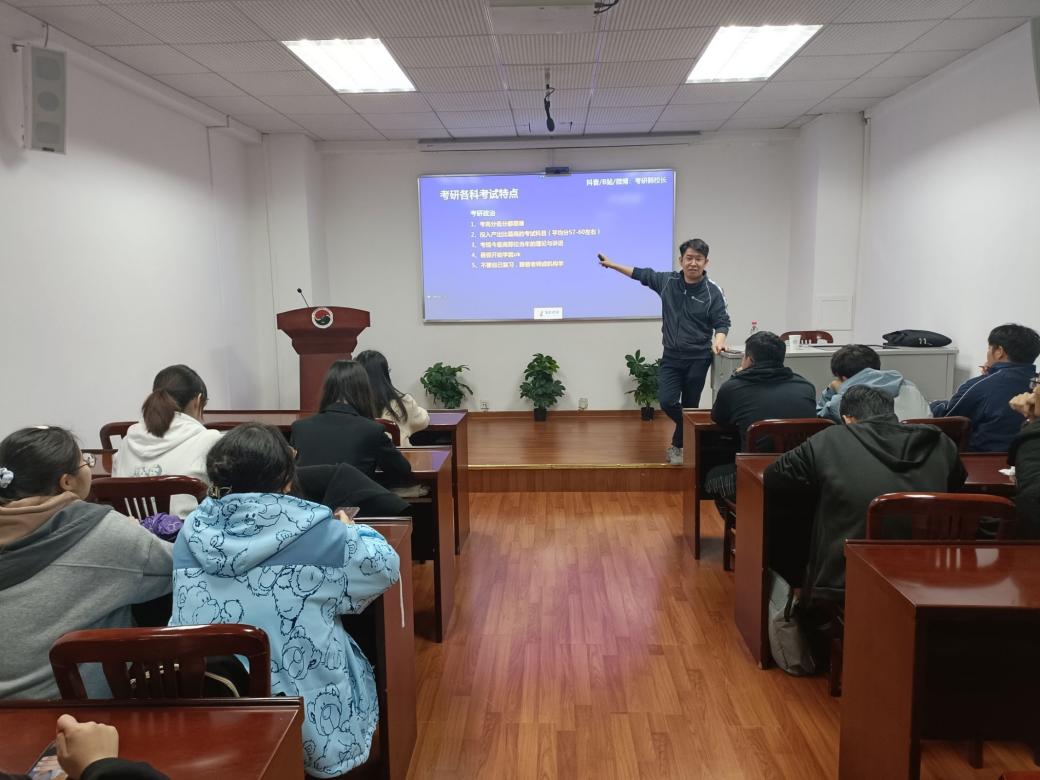 活动首先由徐刚老师主持交流会开幕,并向同学们介绍此次活动主要内容及主讲人考研韩董事长。韩董事长由自己从QY球友会体育的求学经历讲起,介绍了他的从教经验后,切入了今天的主题:考研交流。