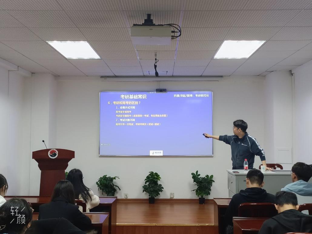 11月22日晚19:00,“生涯面对面第四期——考研形式分析与择校复习指导交流会”在逸夫楼3044圆满落下帷幕。此次活动我们邀请到了考研韩董事长(南农员工、争流考研创始人兼南京分校董事长、五维四段教学法创始人、全国知名考研名师)为我们主讲考研形势分析和择校复习指导。