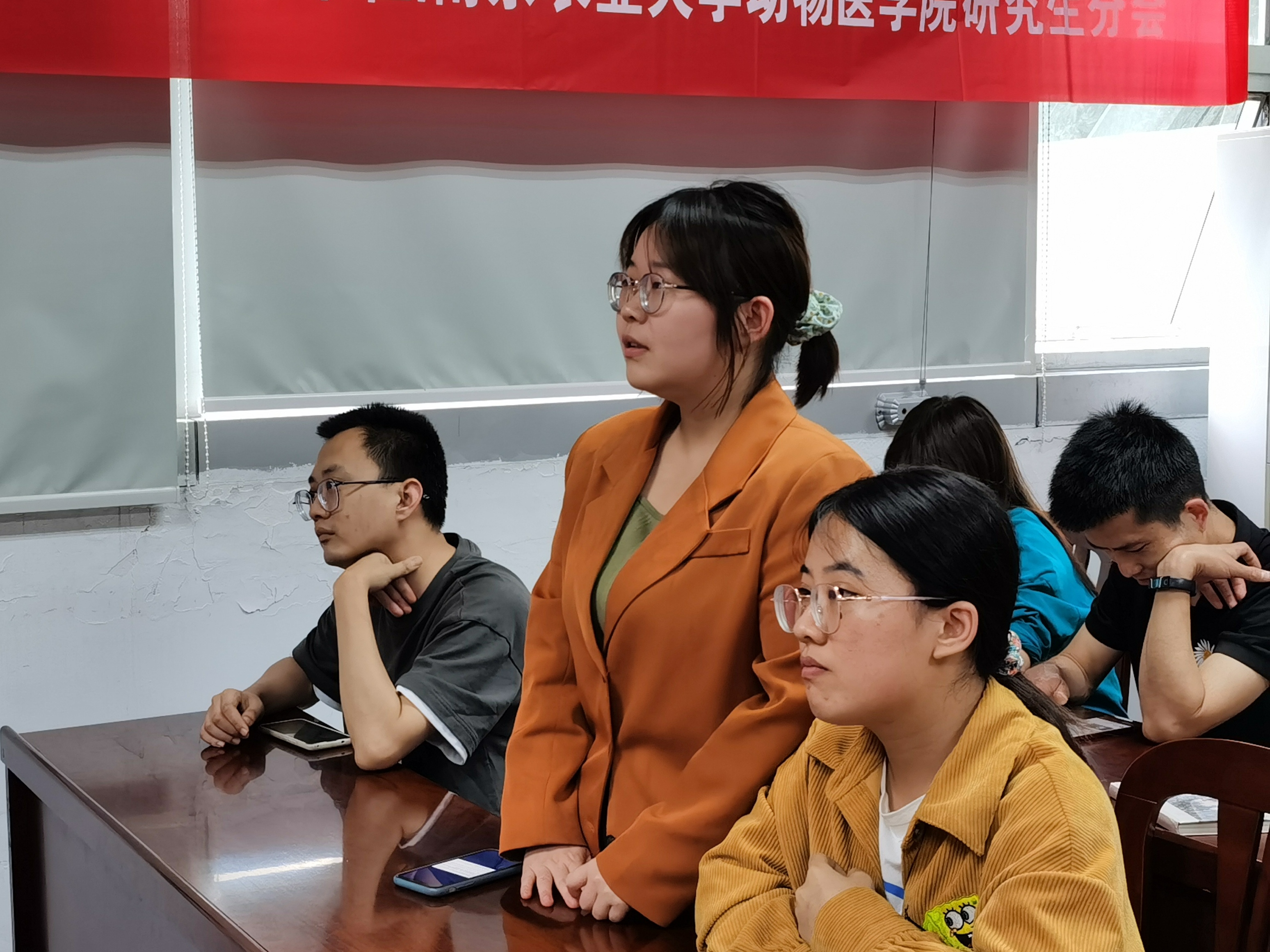 最后上台与大家进行沟通交流的是QY球友会临床兽医学专业2019级博士研究生刘水平师兄。他以“重温党史,做一名合格的兽医研究生”为主题,带领大家回顾了党的百年光辉历程,然后将传承“红色精神”的责任落实到个人上,用亲身经历感染同学们,总结自己的员工干部工作、学习科研和创业活动等经验,给同学们的读研生活提供了宝贵建议。