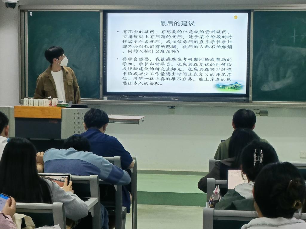 随后,5名同学为低年级备考的学弟学妹们提供了很多有用的备考资料、相关APP和公众号等,并同步分享了自己完备高效的学习方法。