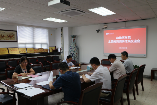姜平分享“加强有组织科研,促进兽医学科高质量发展”主题教育调查研究成果,从引领师生主动担当作为、抓团队和平台建设和研究制定学院机制三个方面具体阐述。