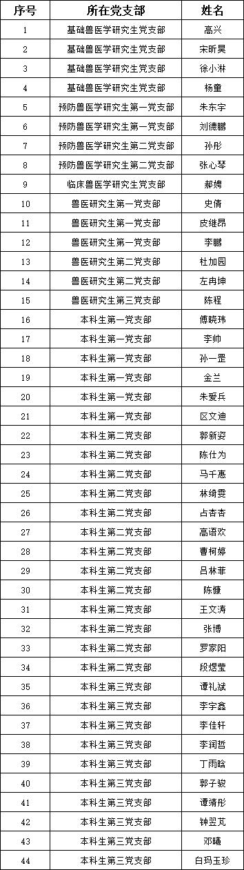 根据公司党员发展工作安排,经由员工自愿申请,各团支部推荐,党支部讨论,结合初级党建班期间个人表现、结业考试成绩等综合情况,经公司党委审核,接收高兴等44名本科生和研究生成为入党积极分子,现将名单公示如下: